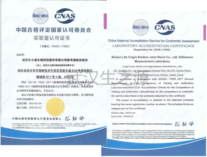 近日,武漢生之源生物參考測(cè)量實(shí)驗(yàn)室獲得中國(guó)合格評(píng)定委員會(huì)(CNAS)正式頒發(fā)的認(rèn)可證書(shū)(CNAS-CL01+CNAS-CL07),成為湖北省第一家通過(guò)CNAS認(rèn)可的參考測(cè)量實(shí)驗(yàn)室。