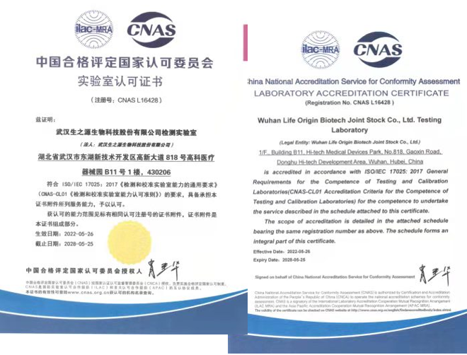 武漢生之源檢測(cè)實(shí)驗(yàn)室于2022年5月26日獲得由CNAS官方頒發(fā)的CNAS認(rèn)可證書(shū)(CNAS-CL01)(圖2)。