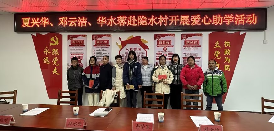 12月6日下午,武漢生之源生物科技股份有限公司股東、民革湖北省委員華水蓉與省民革其他委員一起深入到通山縣大畈鎮(zhèn)隱水村,考察學(xué)習(xí)鄉(xiāng)村振興情況,開展愛心公益助學(xué)活動(dòng),并與省紀(jì)委工作隊(duì)的同志進(jìn)行了交流,與該村十二組,來自于低保、脫貧戶,現(xiàn)在縣實(shí)驗(yàn)高中讀高三的袁湘蘭同學(xué),結(jié)成一對(duì)一幫扶,當(dāng)場捐獻(xiàn)了3000元現(xiàn)金,并承諾在往后的學(xué)習(xí)生活遇到困難,給予適當(dāng)救助,直至大學(xué)畢業(yè)。據(jù)了解,大畈鎮(zhèn)隱水村現(xiàn)有600多戶、2100多居民,其中低保、貧困戶有60多,約占10%。